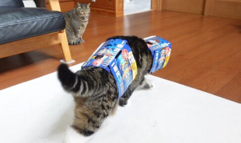 その後、ミコちゃんが後ろから接近して2匹のバトルになり、激しくじゃれ合っている姿が面白いです。なんだかんだでキラちゃんとミコちゃんは仲が良くてじゃれ合うことが好きですが、今回はユニークなシーンをピックアップしてくれています。