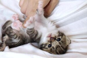 あれだけ眠くて仕方なかったはずなのに次の瞬間には完全に目が覚めて大きな声で鳴き始めました。子猫は1秒あれば完全に覚醒できちゃうものなんですね。