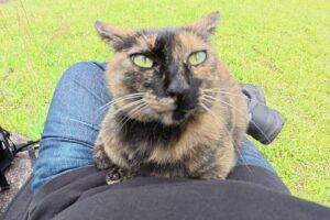黒子猫ちゃんを寝かしつけると、次はアッシュちゃんの番!と言わんばかりに飼い主さんに甘えにいきます。