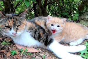 娘さんの足元まで移動してチョコンと座り、上目遣いでミャーミャー鳴いてオネダリをしたり。