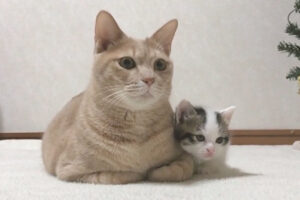 パンダ柄のうさぎの頭の上に猫が頭を乗せて、まくら扱いをしてしまっています。猫の顔がずいぶんふてぶてしく見えますが、きっとリアルではこの2匹は大の仲良しなのでしょうね。