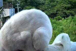 その場に残された猫はポカーンとしていますが飼い主さんに撫でてもらってご満悦です。