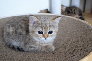 スコティッシュフォールドの子猫のぽこ太郎くんがお腹を空かせてキッチンへやってきました。お母さんのごはんを食べる?の問いかけに後ろ足で立ち上がって早くちょうだいにゃ〜と急かしています。