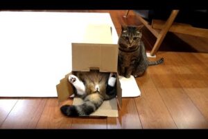 猫ちゃんの身体をより大きな寝床を咥えて運ぶのはとっても大変そう。