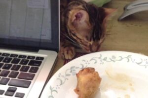 ようやく準備が終わり念願のミルクにありつけた3匹。