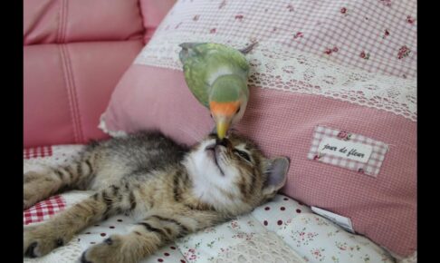 もし落ちたら即死は免れないというのに、猫ちゃんはまったく気にせずのんびりくつろいでいました。