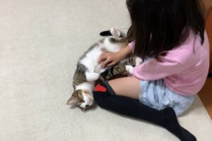 むぎくんが尻尾を動かしていると、その尻尾を触りにいく子猫ちゃん。