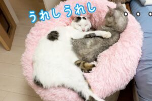 ワンコが何度抗議しても全く動じない猫。完全に猫の圧勝といったところでしょうか。