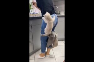 それでも、飼い主さんの服の上に手を伸ばしてきたりするなど、飼い主さん大好きな子猫の様子でした。