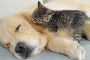 可愛い!大人猫にちょっかいを出しにきた子猫