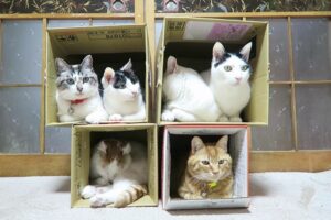 なんと、テーブルで猫がキャベツをバリバリかじっています。それも椅子にちゃんと乗っかり、踏ん張るようにテーブルに両手をついたままの姿勢です。