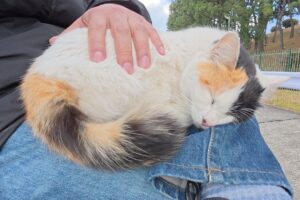 すると猫ちゃんはこちらを振り返り、もう赤ちゃんは落ち着かせたから大丈夫ニャよ?とばかりにじ~っと見つめてくるのでした。