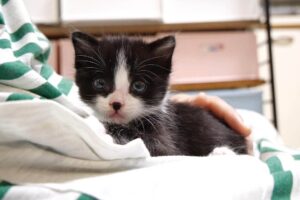 ごはんをもらうと、きれいにしっかり完食してくれました。お腹がいっぱいになったらすぐに眠くなってしまうのが子猫です。