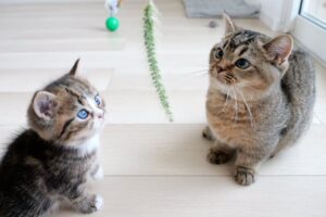 まだ大人の猫さんのことはちょっと怖いけれど、柴犬にはかなり心を許していて一緒に遊びたいようです。柴犬も、母性本能があるようで、子猫のことを自分の子供のように気にしている感じもありますね。