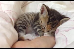 部屋の中で寝転がっている息子さんのお腹の上で寝ようと、小さな手足を伸ばして一生懸命体によじ登っています。けれどそこはまだまだ子猫、成猫さんほどの身体能力がないせいか、途中でころんっと転がり落ちてしまいました!