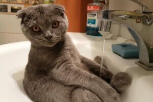 白い子猫は飼い主さんに好かれているようで、愛らしい動きをして応えています。