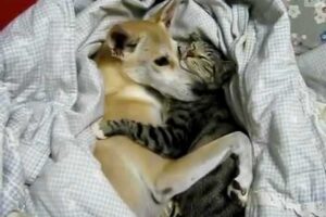 そして、今度は子犬たちが手を取り合って寝ている子犬を起こそうとしますが、眠い子犬は目を覚ましたもののすぐに寝てしまいます。