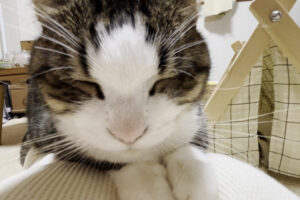 小豆の収穫をする女性は手慣れた様子で手を動かしているため、猫もその姿を見て何かを研究して学んでいるのかもしれません。
