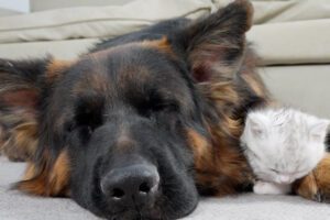 犬は赤ちゃんの様子が気になるようで、近くに行って寄り添うなどまさに相棒という感じで見ててほっこりします。