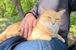 この子猫は車からポイ捨てされたところを保護されたとても運の強い子です。毛はふわふわしているのですが抱っこするとかなりガリガリでやせっぽちのようです。