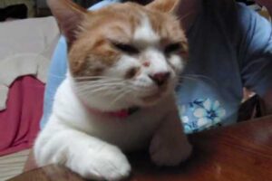 数ヶ月の赤ちゃんに爪をたてないようにと、色々と気配りしながらの抵抗がなんとも微笑ましいですね。ついに大人飼い主さんも赤ちゃん飼い主さんへストップ!の仲裁に入ったところで、愛猫ちゃんも自由に。