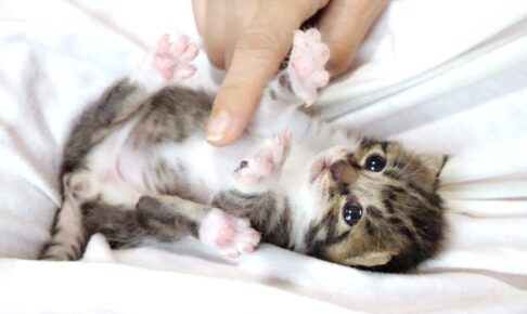 飼い主さんが近くで撮影しているその気配に気づいて一瞬目を覚ますのですが、そのままぬいぐるみをギュギューっと思いっきり抱きしめ伸びをするようにして、再び眠りに落ちていきました。