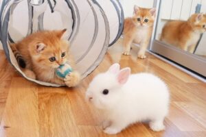 お母さん猫に毛づくろいをしてもらっている間も、2匹ともじっとおとなしくしてくれません。毛づくろいが終わると、すぐに双子同士でちびっこレスリングが始まります。