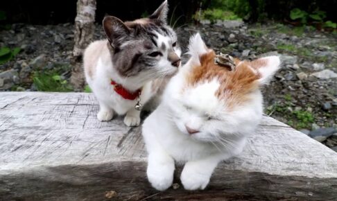 離乳食を上手に食べる白猫ちゃんに対して、まだまだミルクが恋しくてなかなか離乳食に移行できないキジトラちゃん。