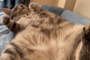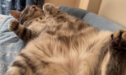 毛がふわふわの三毛猫REGGIEはよく寝て、よく食べて、よく遊ぶ自由気ままなニャンコです。