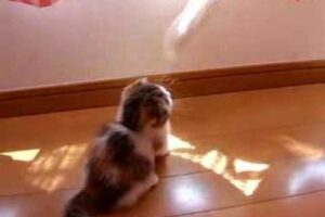 どうやらこれからごはんの時間のようですね。ドアが開くと、一斉に9匹の猫たちが部屋のなかに雪崩れ込んできました。
