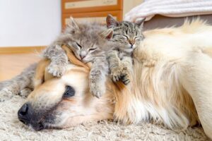 最初はサビ猫、続いて薄いクリーム色の子。最後にオレンジの子。みんな仲良くケージのなかでお昼寝をはじめました。