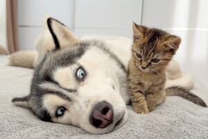 そこへもう一匹の子猫も乗っかってきました。子猫たちにとってはミニブタさんは、ふかふかのクッションのような感覚なのでしょう。