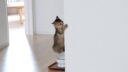 子猫の兄弟がキッチンに立つ飼い主さんの足元をうろうろしています。ちっちゃな子猫たちがうろうろしているので、思わず踏みそうになってしまわないか心配になるほどです。