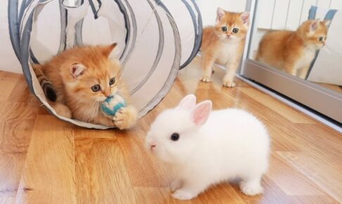 さすがに猫もしびれを切らしたのか最後にはそのまま立ち去ってしまいますが、犬の方はどうやらかまってほしいようです。
