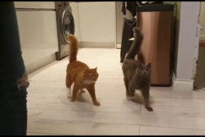 ちょっと迷惑なこの子猫は体を起こすことに成功したのですが、なんとバランスを崩してしまってあっという間に元通りの状態になってしまいました。