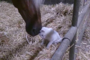 子猫も何をされてもへっちゃらで、飼い主さんからの愛情をたっぷり受けて、とても満足そうな顔をしています。