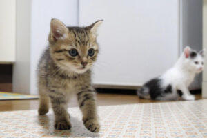 1匹はグレーと白のミックスの模様、そしてもう1匹はグレータビーです。どちらも可愛くてなかなか1匹に絞り込むことができないようです。