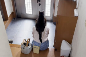 そして大きめのネコちゃんがニャーと声を出すと、子ネコも声を出そうとしますがその声はか細くてちゃんとした鳴き声にはなっていません。