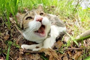 仰向けにひっくり返って襲ってくる子猫ちゃんを迎撃する場面もありました。