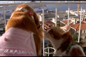 そこへママ猫さんがやってきて子猫たちの様子をチェックしています。