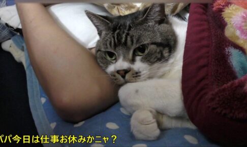 お水を飲んだら兄弟猫と一緒に遊びます。遊びに疲れると、保護主さんのところに集まって膝の上に乗っかりながら甘え始めるのでした。