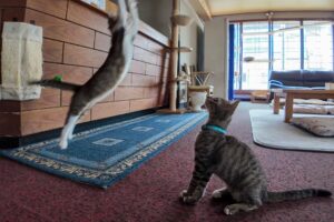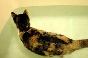 これでは飼い主さんも作業を中断せざるを得ませんが愛する子猫のためならちょっとの間、この場所を貸してあげるしかありませんね。