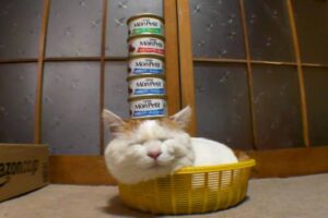 兄弟同士で寝床の中でゴロゴロしているほうが楽しいのかもしれません。みんなでコロンコロンしているところでしたが、飼い主さんが子猫たちを寝床から外に出してあげることにしました。