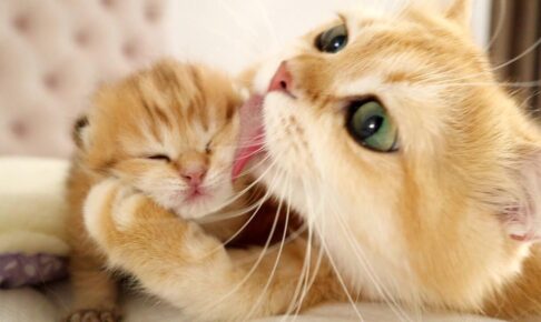 こっちの赤ちゃん猫のことを舐めていたと思ったら、もう1匹の赤ちゃん猫のお世話を始めたりと、大忙しです。複数の赤ちゃん猫がいると、やっぱり大変ですね。