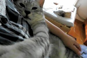 でもその大きな顔のところに子猫がぴったり体を寄せてきているので、それが鬱陶しくて思わず顔を子猫から逸らしてしまいます。