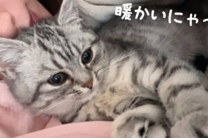 でもお兄ちゃんが手で豆大福を押し上げてくれたので、今回はお腹の上に落ち着くことができたようです。そしてやっとウトウトとし始めた豆大福はあっという間に夢の中へ〜