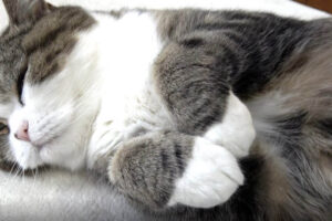 ひと足先に疲れて眠くなってしまったゆきちゃんがベッドの中に入ってお昼寝の準備を始めました。