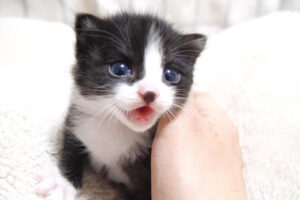 手を差し出す飼い主さん。猫ちゃんも、ふわふわな前足を差し出してこたえます。手が上に移動すれば、上へ。手が下に行けば、下へと追いかけます。