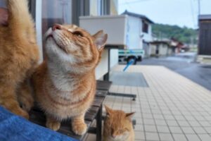 お顔がそっくりな双子の子猫を膝の上に乗せて、優しく撫で撫でしてあげるとどちらも前足を上にあげて可愛い開きができあがってしまいました。