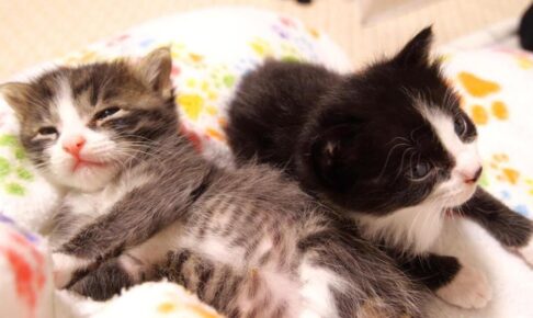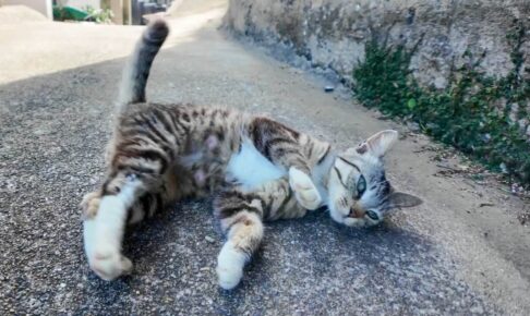 それを見ていた最初の猫さんも危険が無いとわかったのか、一気に近づき氷をペロペロと舐め始めました。